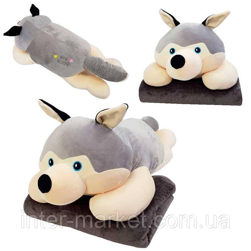 Плед Іграшка, подушка, 3 в 1 Хаскі, м'яка іграшка з пледом усередині