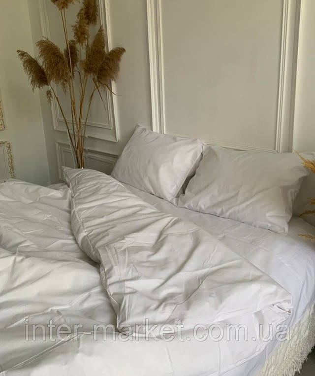 Двуспальний комплект якісної постільної білизни Бязь Gold Lux 180*200 Світло сірий